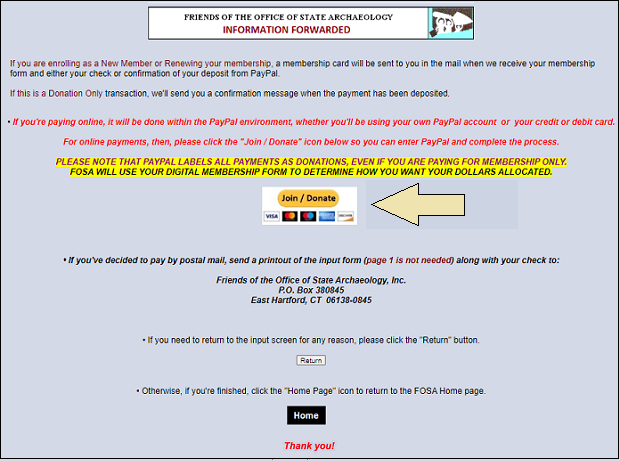 form on the Join / Donate page and have clicked the "Submit" button at the bottom of the form.